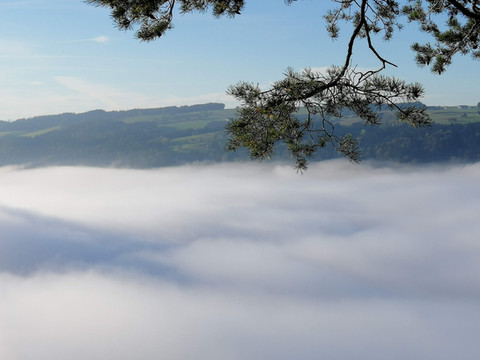 Der Gruppenfotograf jubelte: "Kommt alle her! Das gibt es nur einmal in 20 Jahren!" Aber ich war ja wegen der Donauschlinge hier. (Die sollte unter dem Nebel sein. Genau kann ich es aber nicht sagen, denn ich habe sie ja nicht GESEHEN!)