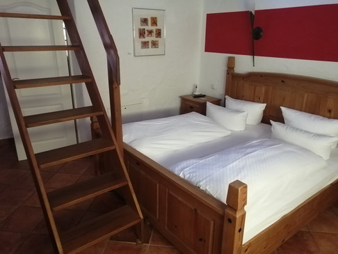 Die Räder wollte ich im Gasthof zum Slawen ausleihen. Ich habe schon zuvor per E-Mail die Räder reservieren wollen, bekam auf meine E-Mail aber keine Rückmeldung. Wir haben es auf gut Glück versucht. Mein Highlight war die ausgesprochen emotionslose Betreiberin. Egal, wie freundlich oder motivierend ich war, sie blieb einsilbig. Auch kleine Scherze halfen nicht.