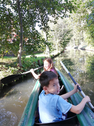 Mit den Kindern habe ich schon zu Beginn die Sitzreihenfolge ausgemacht: Alles ist möglich, aber ich sitze hinten. Lara Mei war die Vorderste, Armin in der Mitte. Beide mit Stechpaddeln, ich mit einem Doppelpaddel. Es fing gut an, die Kinder paddelten und ich brauchte nur ein paar Korrekturschläge zu machen.