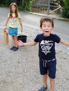 Am nächsten Tag ging es gänzlich ausgeruht so weiter. Immer wieder wurden zu Boden gefallene Eicheln der dort stehenden Eiche in einem Kübel gesammelt. Später sind wir nach Hochrieß gefahren, wo wir die Eicheln und altes Brot an die dortigen Wildschweine im Gehege verfütterten. Die Eicheln waren der Renner - dafür wurde sogar das Brot teilweise liegengelassen.
